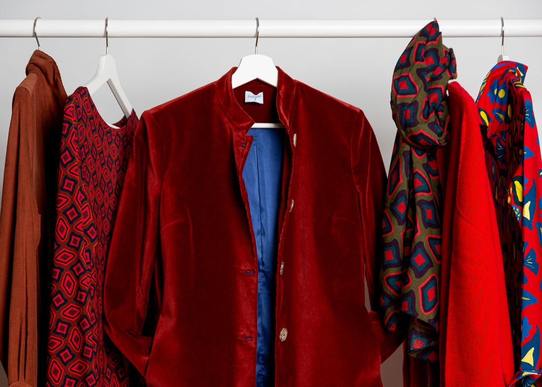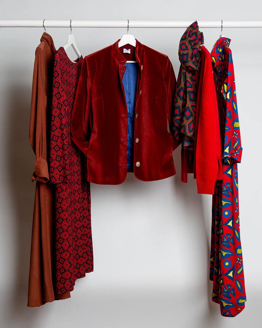Ielpo affascinato dal mondo Liberty, crea stampe uniche dai colori cangianti realizzate sui tessuti che più ama, come i jersey di viscosa, le lane i lini.