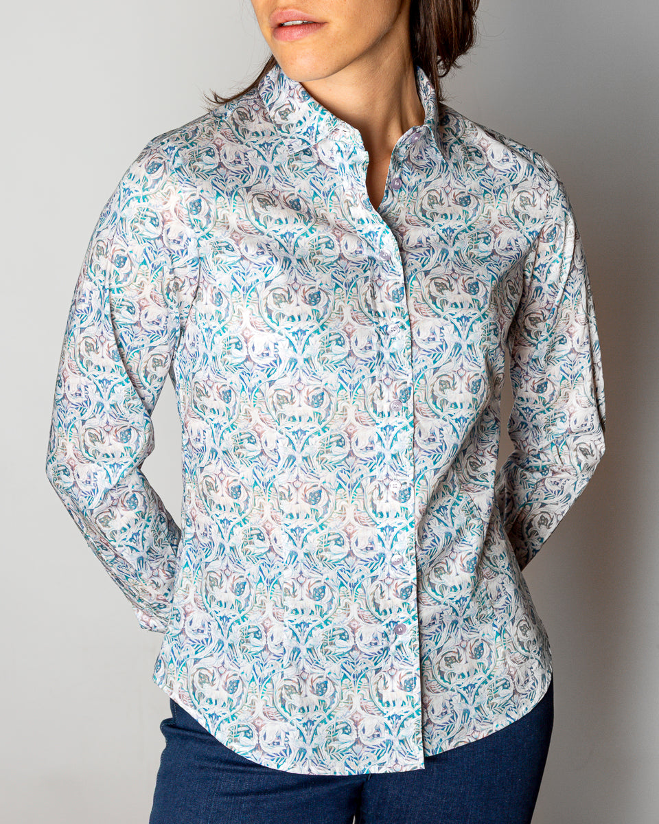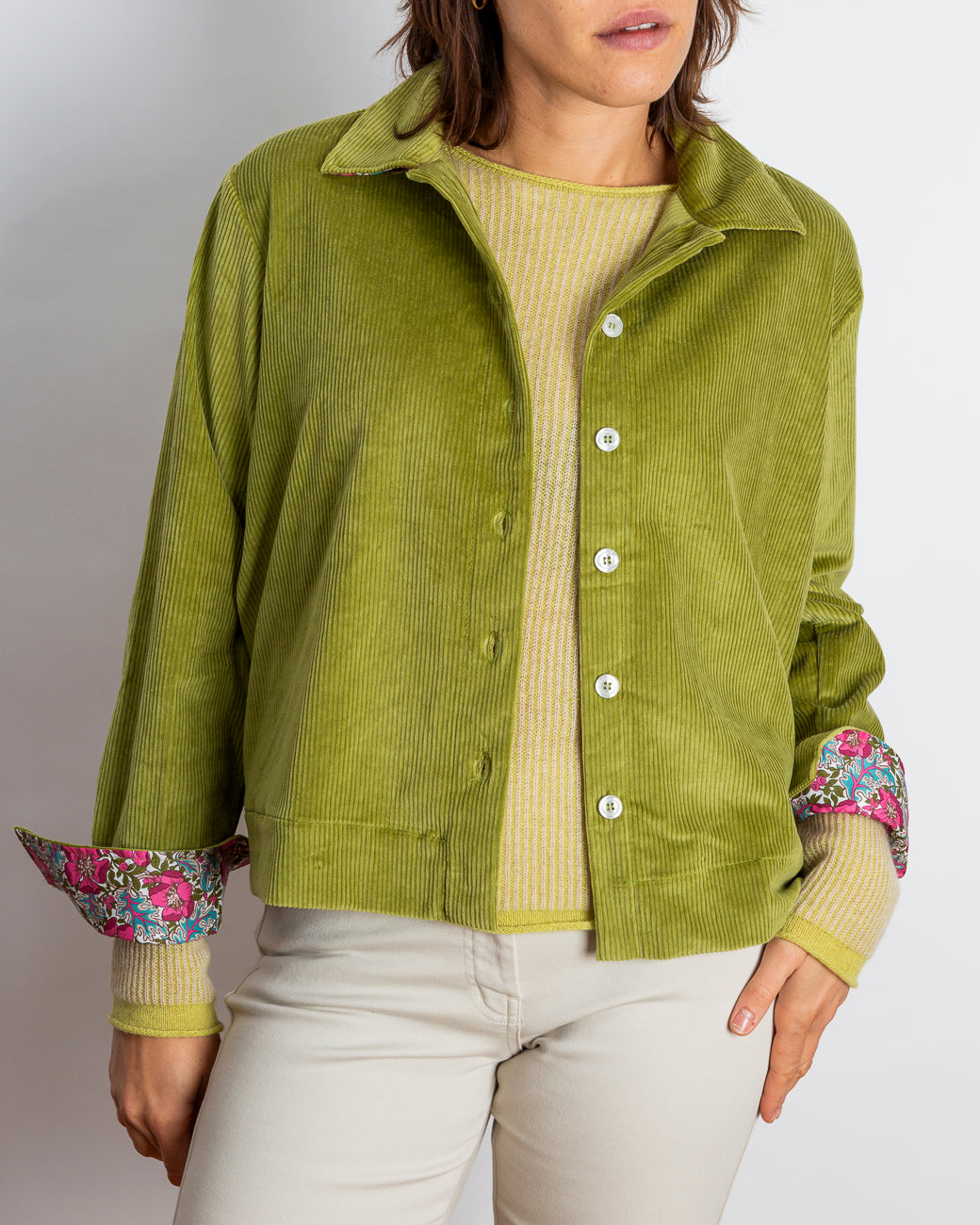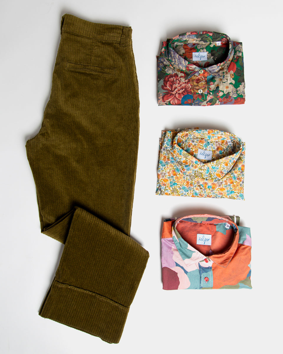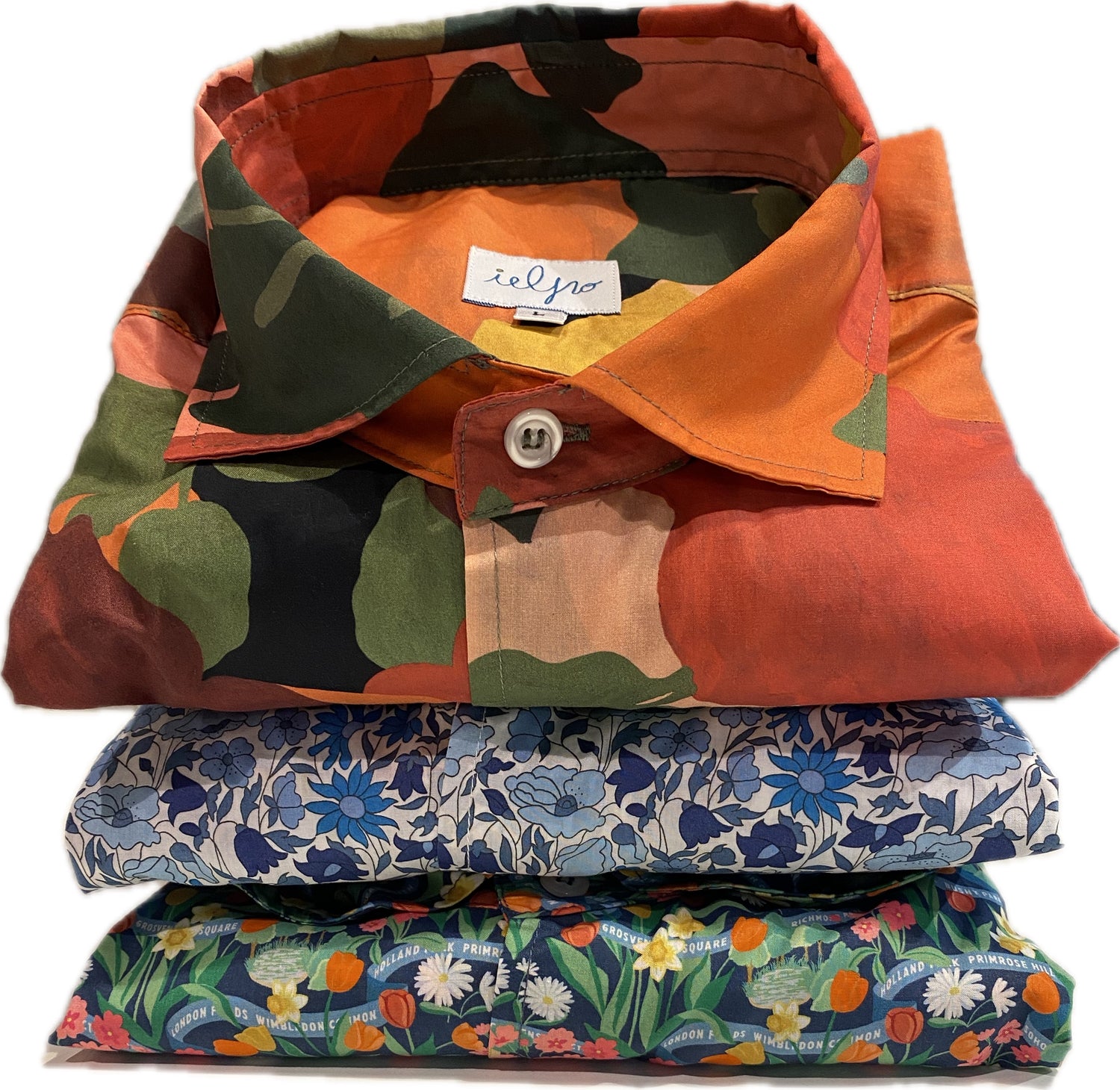 Ielpo affascinato dal mondo Liberty, crea stampe uniche dai colori cangianti realizzate sui tessuti che più ama, come i jersey di viscosa, le lane i lini.